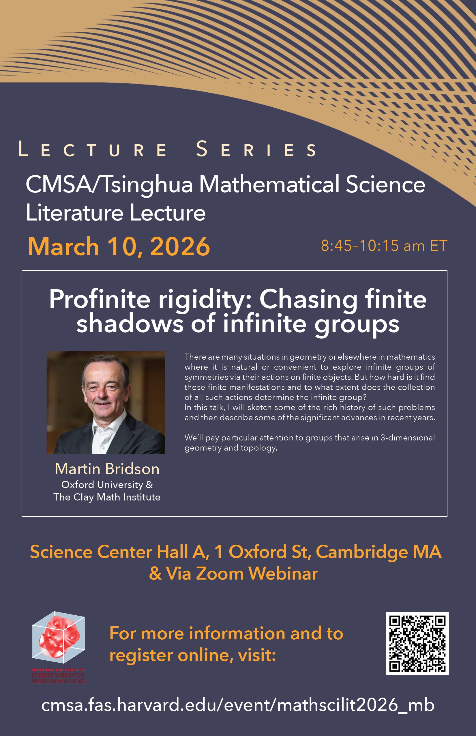 CMSA/Tsinghua Math-Science Literature Lecture: Martin Bridson: Profinite rigidity: Chasing finite shadows of infinite groups
